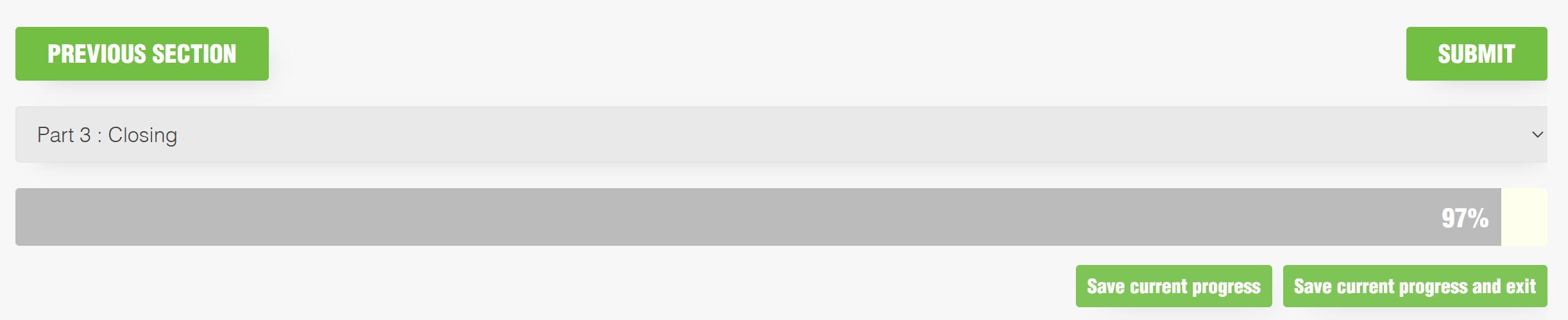 7. U kunt tussendoor uw antwoorden opslaan en de site verlaten, indien gewenst. Om uw antwoorden te versturen drukt u op 'submit'.